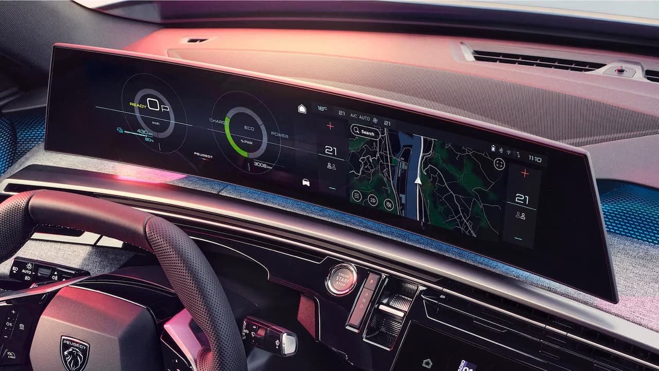 Retrouvez une expérience de conduite toujours plus intuitive avec le nouveau PEUGEOT i-Cockpit® panoramique :