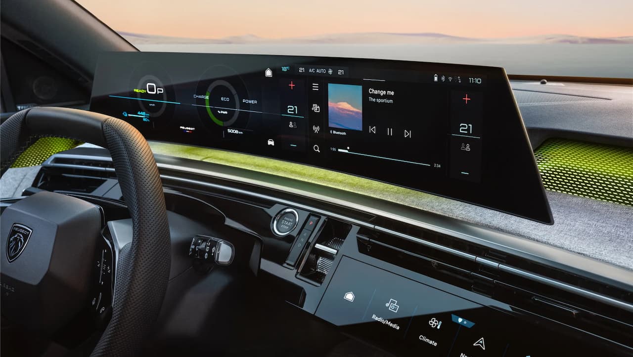 - Écran panoramique de 21’’ HD incurvé, flottant au-dessus de la planche de bord